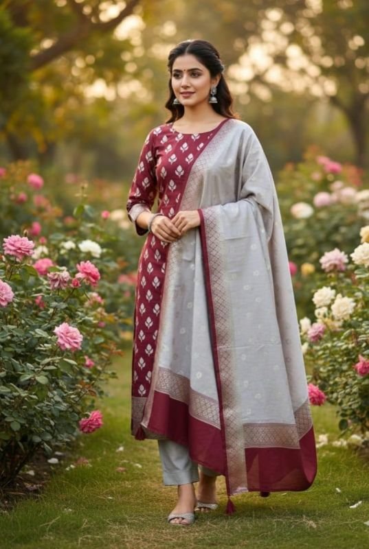 Our collection includes vibrant and colorful dupattas for plain suits, printed suit and dupatta combos for a modern touch, and contrast dupattas that enhance your look effortlessly. Explore elegant ethnic suits, affordable sets, and winter-appropriate designs that keep you cozy without compromising on fashion. From youthful designs for teenagers to sophisticated office wear options, there's something for everyone.