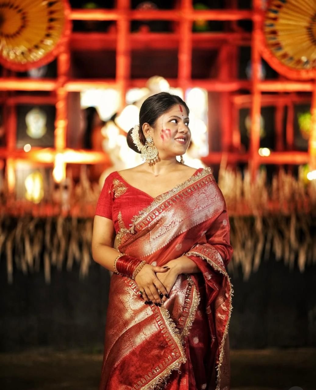 Whether you are attending a wedding, a festive celebration, a formal event, or any special gathering, this saree is a perfect choice to stand out with elegance. The lightweight yet rich texture makes it easy to carry and wear all day without any discomfort.