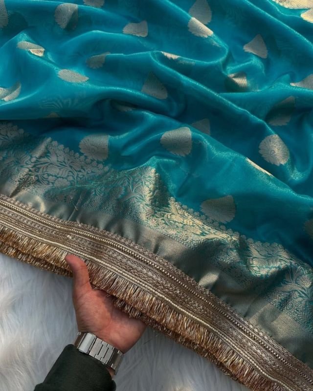 “This beautiful Banarasi [MAHARANI TISSUE SILK SAREE WITH LACE WORK] is crafted with elegance and premium quality fabric. With a length of 6.5 meters, it is perfect for weddings, parties, festivals, and special occasions. Available in a wide range of colors – you can customize it as per your preference. For more details or inquiries, feel free to WhatsApp us anytime!”