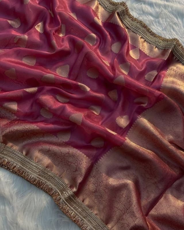 Whether you are attending a wedding, a festive celebration, a formal event, or any special gathering, this saree is a perfect choice to stand out with elegance. The lightweight yet rich texture makes it easy to carry and wear all day without any discomfort.