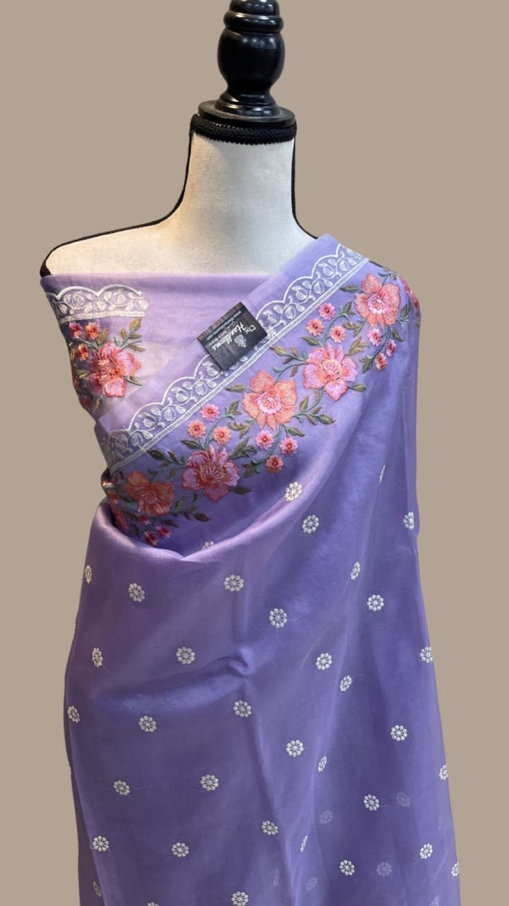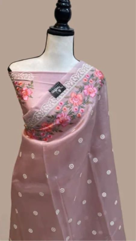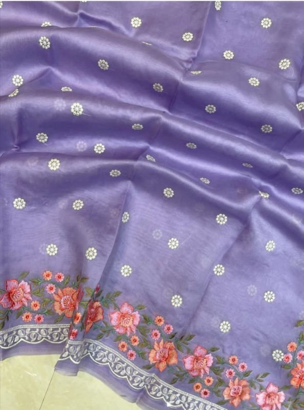 Exclusive Collection Banarsi Deybal Semi Kora Organza Soft Silk Minna work Embroidery Lace Work Saree ????♀️ High quality ????% customer satisfaction With exclusively minna work Embroidery folwer design border with Lace All over Embroidery work Butti with minnawork Embroidery pallu With blouse piece