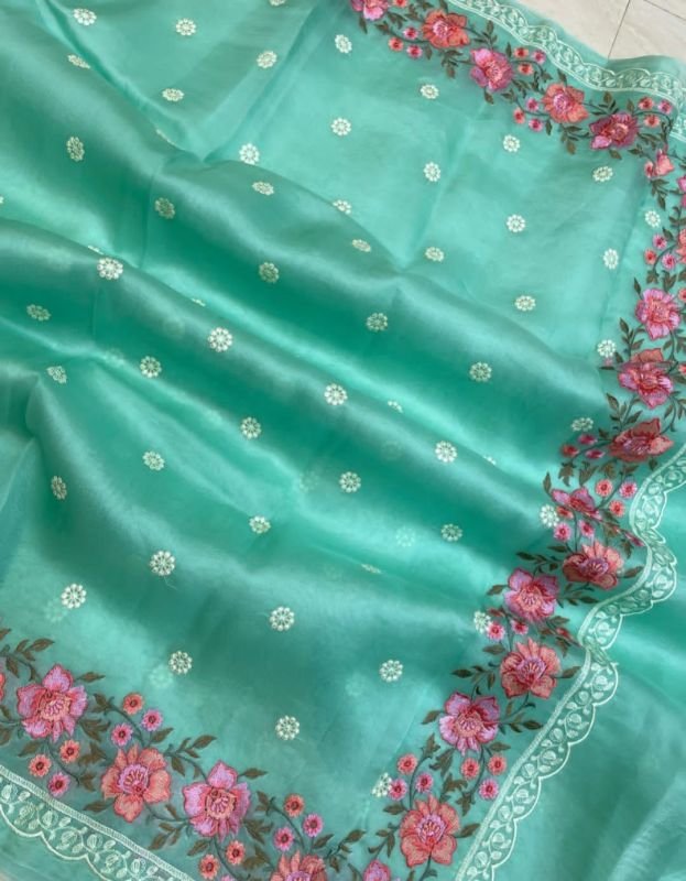 Banarsi Deybal Semi Kora Organza Soft Silk Minna work Embroidery Lace Work Saree