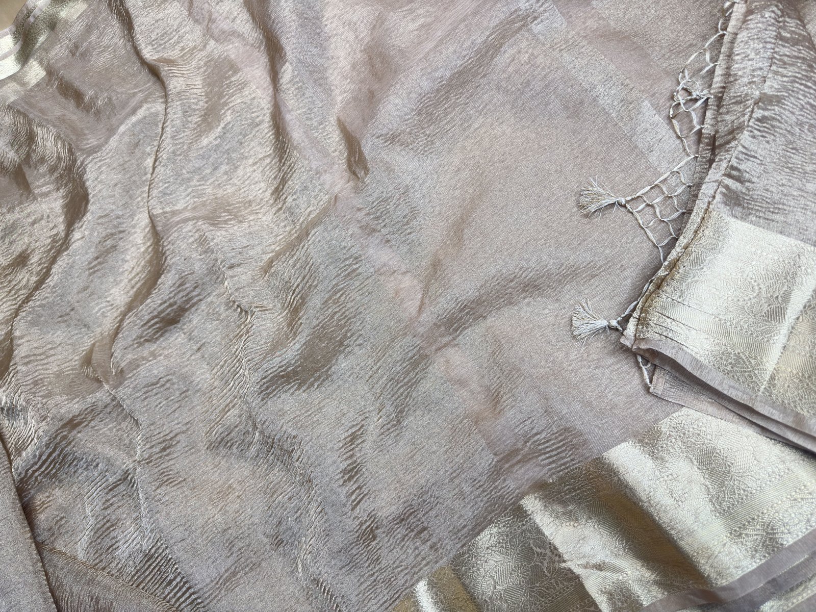 Banarasi Crush Tissue Silk Saree with Zari Border