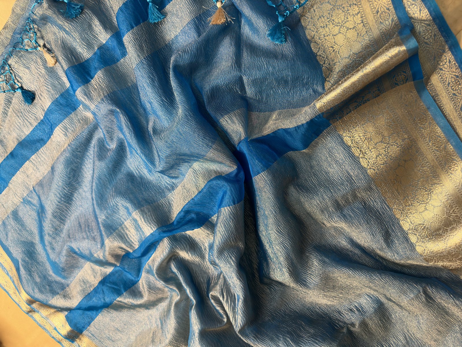 Banarasi Crush Tissue Silk Saree with Zari Border