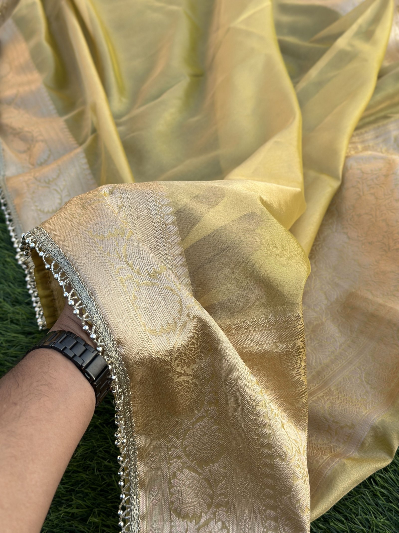Banarasi Tissue Silk Saree with Brocade Palla & Brocade Blouse paired with Lace work