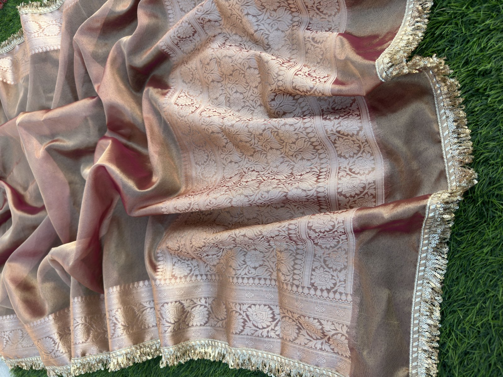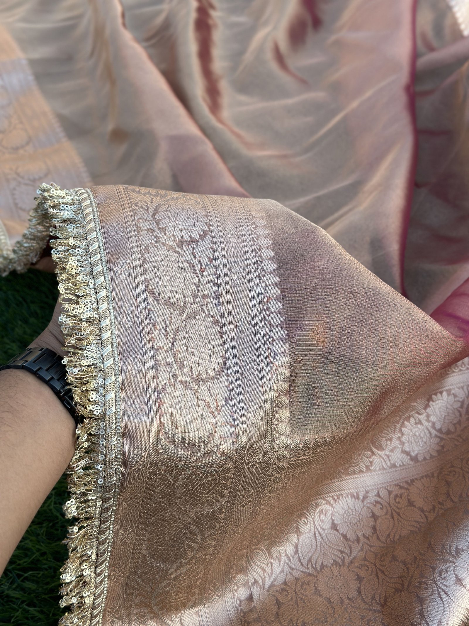 Banarasi Tissue Silk Saree with Brocade Palla & Brocade Blouse paired with Lace work