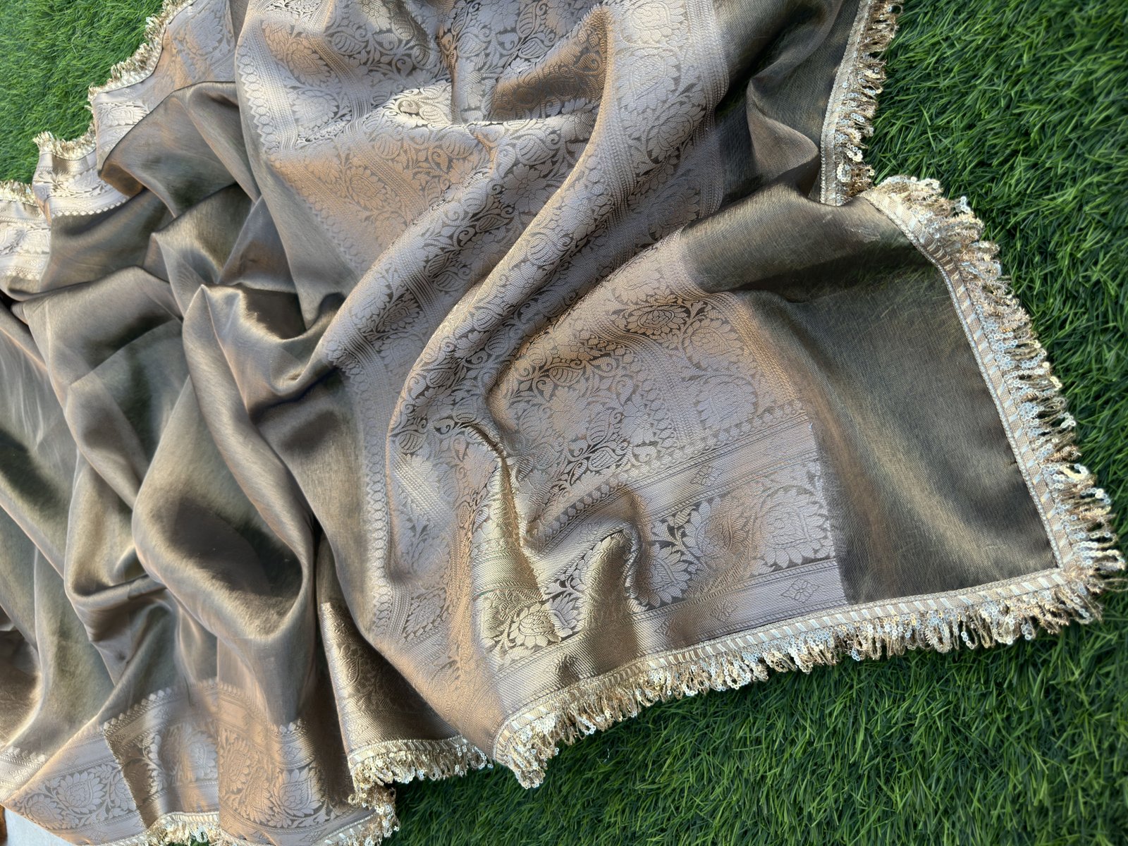 Banarasi Tissue Silk Saree with Brocade Palla & Brocade Blouse paired with Lace work
