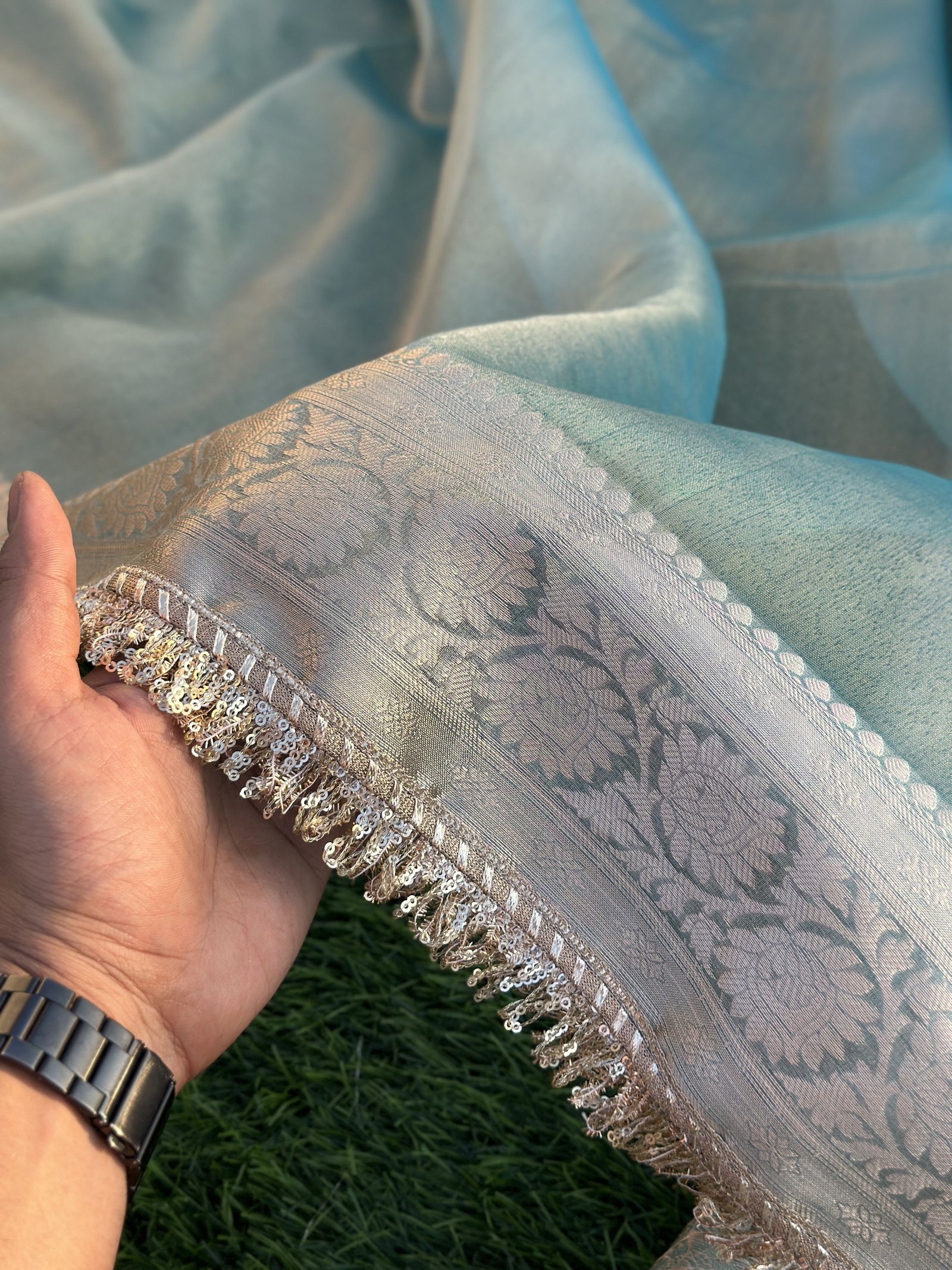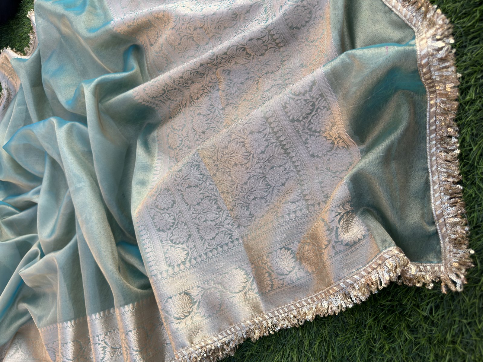Banarasi Tissue Silk Saree with Brocade Palla & Brocade Blouse paired with Lace work