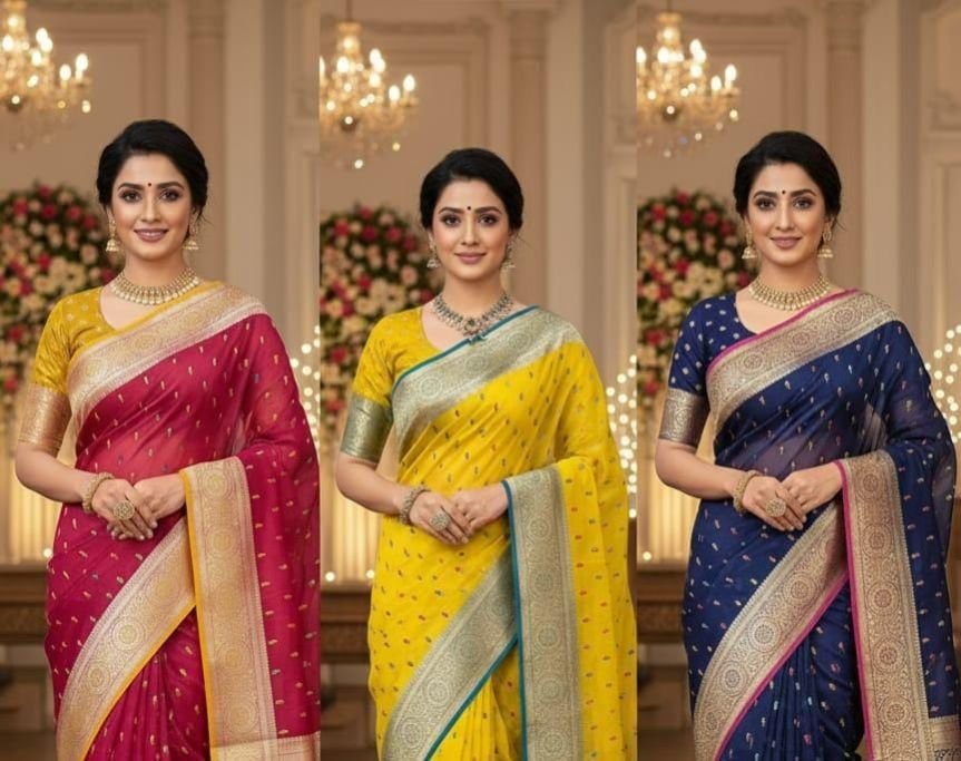 This beautiful Banarasi [KORA ORGANZA SAREE ] is crafted with elegance and premium quality fabric. With a length of 5.5 meters, it is perfect for weddings, parties, festivals, and special occasions. Available in a wide range of colors – you can customize it as per your preference. For more details or inquiries, feel free to WhatsApp us anytime!”