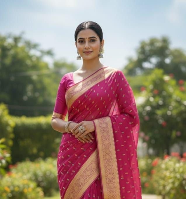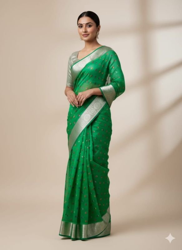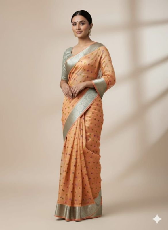 Our exclusive Banarasi [KORA ORGANZA SAREE] is designed to enhance your beauty and add a touch of tradition and elegance to every occasion. Made from high-quality fabric with intricate patterns, this saree offers both comfort and style. The full length of 6.5 meters ensures a graceful drape and easy styling for all body types.