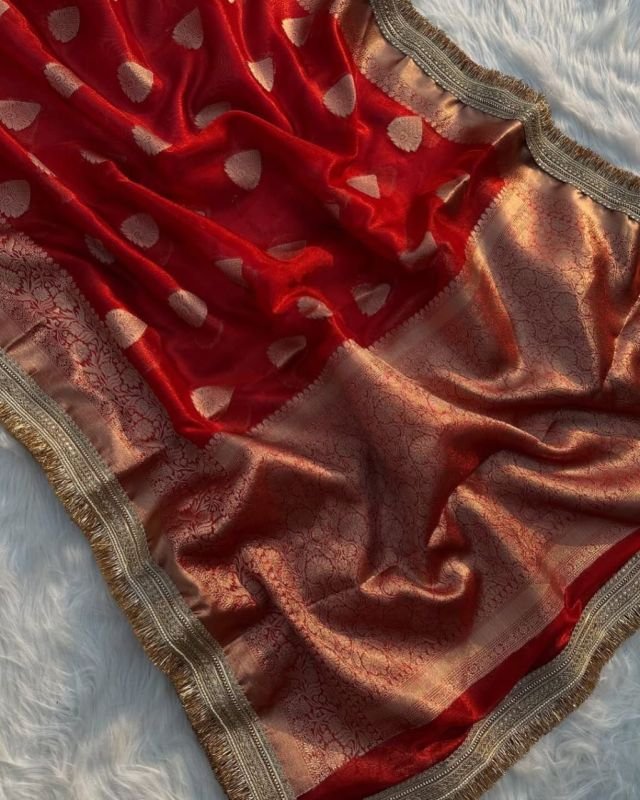 Whether you are attending a wedding, a festive celebration, a formal event, or any special gathering, this saree is a perfect choice to stand out with elegance. The lightweight yet rich texture makes it easy to carry and wear all day without any discomfort.