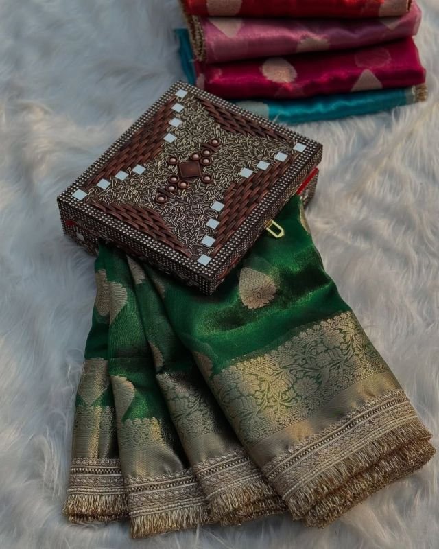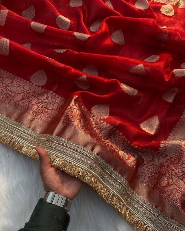 “This beautiful Banarasi [MAHARANI TISSUE SILK SAREE WITH LACE WORK] is crafted with elegance and premium quality fabric. With a length of 6.5 meters, it is perfect for weddings, parties, festivals, and special occasions. Available in a wide range of colors – you can customize it as per your preference. For more details or inquiries, feel free to WhatsApp us anytime!”