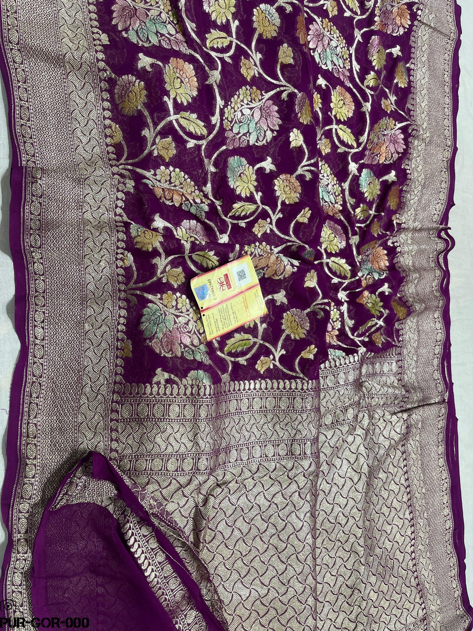 “Our exclusive Banarasi [PURE KHADDI GEORGET SAREE] is designed to enhance your beauty and add a touch of tradition and elegance to every occasion. Made from high-quality fabric with intricate patterns, this saree offers both comfort and style. The full length of 5.5 meters ensures a graceful drape and easy styling for all body types.