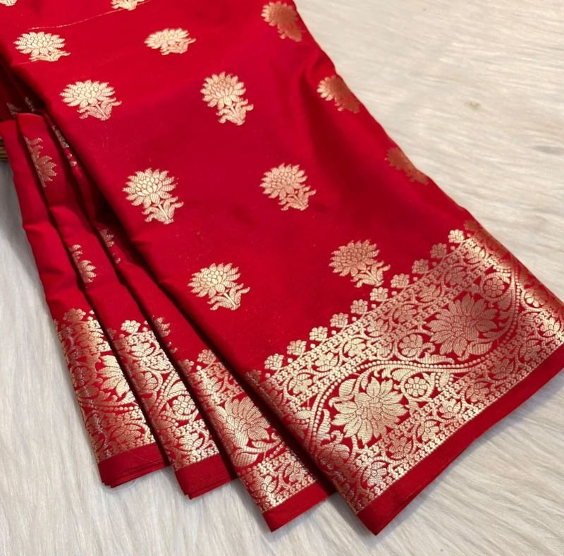 “This beautiful Banarasi [ SEMI KATAN SOFT SILK BOOTI SAREE] is crafted with elegance and premium quality fabric. With a length of 6.5 meters, it is perfect for weddings, parties, festivals, and special occasions. Available in a wide range of colors – you can customize it as per your preference. For more details or inquiries, feel free to WhatsApp us anytime!”